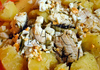 - Апельсин очищаем от кожуры и наиболее толстых белых прожилок, разделяем на дольки. Если есть косточки, отделяем их. Дольки нарезаем кусочками поперек. Раскладываем поровну в три порционные мисочки.