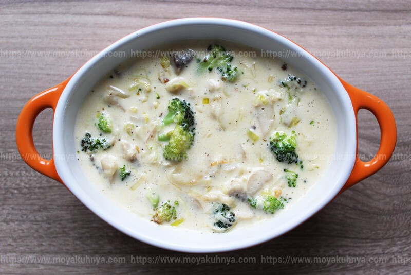 Жульен из шампиньонов и брокколи