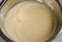 - Яйца взбиваем со щепоткой соли добела в пышную пену. Вливаем цитрусовую смесь в яичную и аккуратно перемешиваем, стараясь не повредить пену.