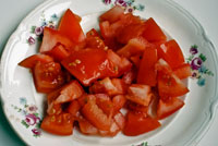 - Мелко режем помидор, измельчаем чеснок, добавляем в суп. Варим еще 3-5 минут.
