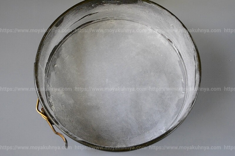 Форму для выпечки смазываем сливочным маслом комнатной температуры и присыпаем манкой.